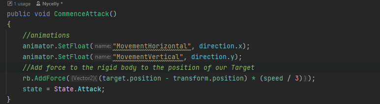 The enemy then goes into a Windup animation, which the animation then calls an event in the script to actually lunge at the player.